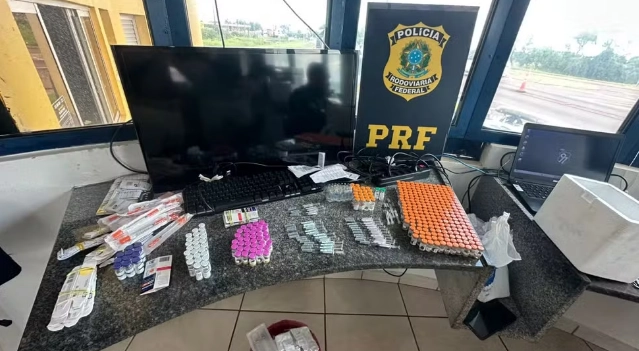 Após o pedido para que o condutor e a passageira desembarcassem, a equipe constatou que ambos escondiam diversos frascos de medicamentos presos ao corpo e às pernas. Ao todo, foram contabilizados 437 frascos.