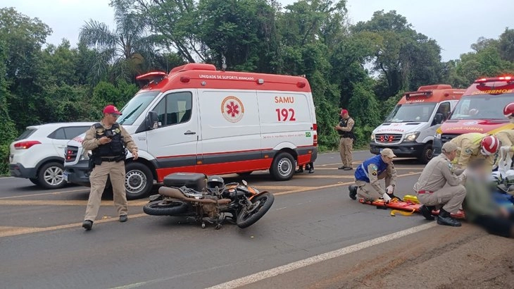 Colisão envolve duas motocicletas na PR-180 e dois os condutores fica...